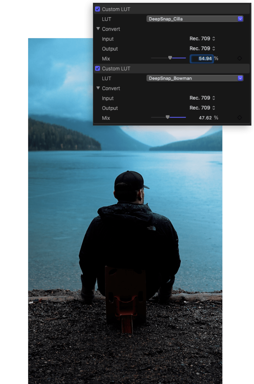 Different LUTs have a different effect depending on the scene and camera setting. Adjustments can be easily made to adapt to most settings.